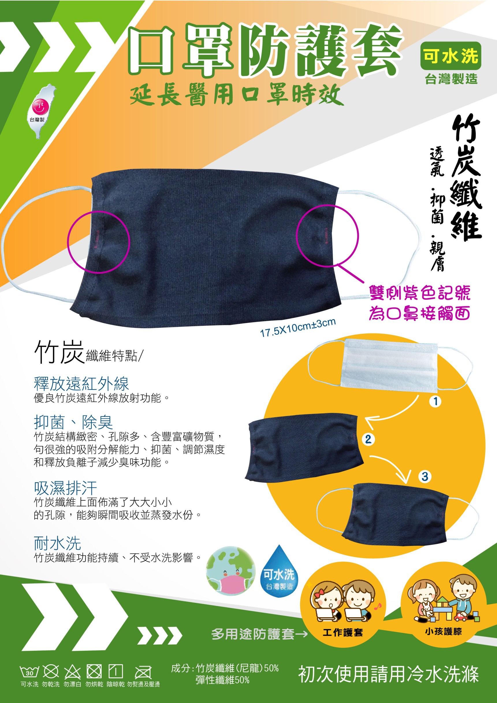 口罩套-竹碳纖維可水洗接受進行原廠委託代工製造OEM