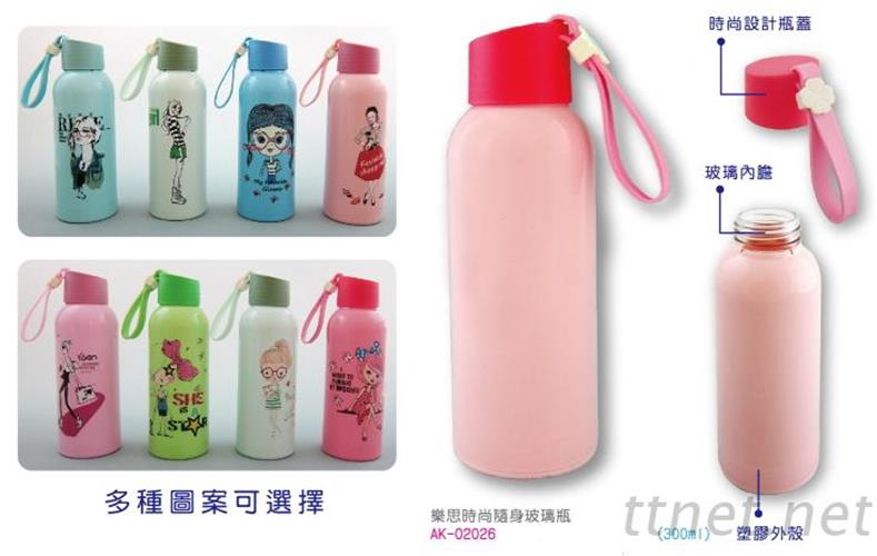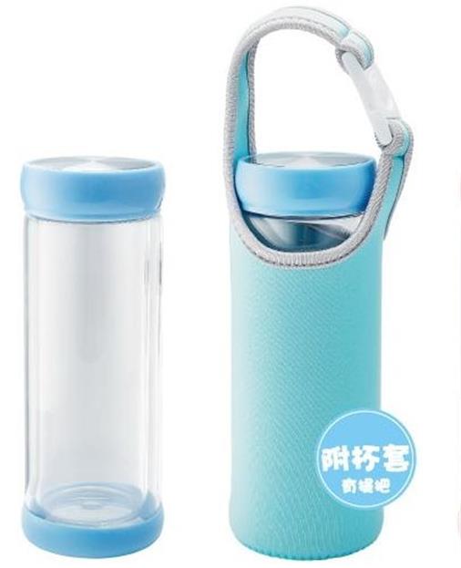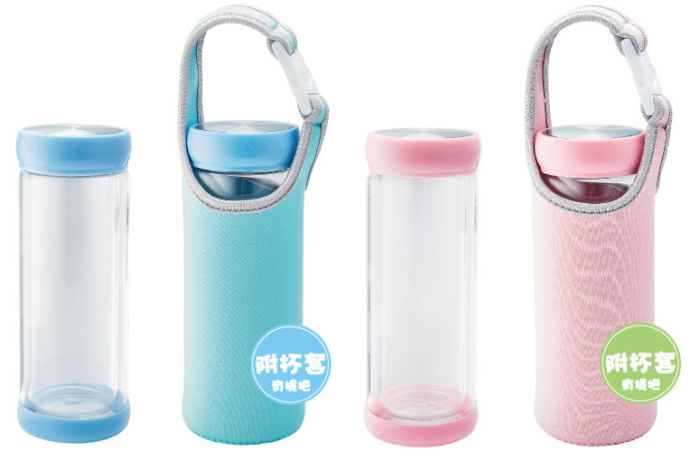 【雙層耐熱玻璃水瓶 】(附保溫杯套) (藍色/粉色)